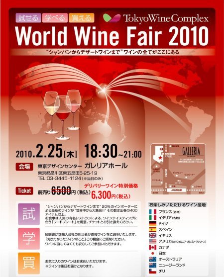 この度、東京ワインコンプレックスが主催するワインイベント「World Wine Fair 2010」にて、デリバリーワインが販売のお手伝いをさせて頂く事になりました!